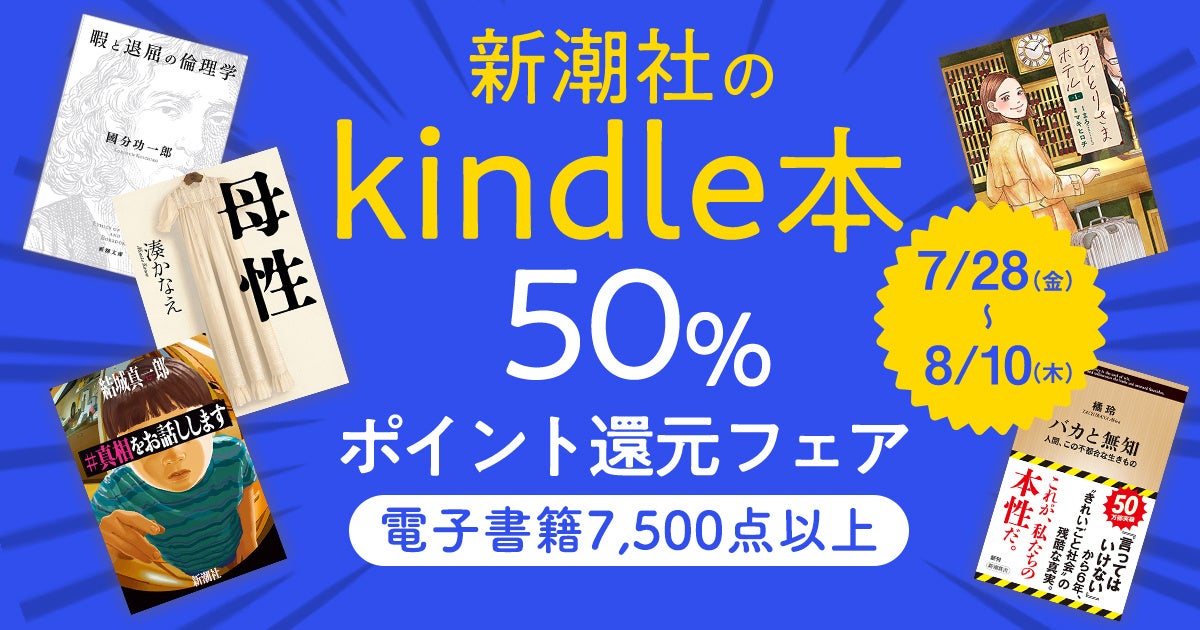 この度、新潮社がKindleで配信している電子書籍の対象作品を購入すると、購入額の50%分がポイントで還元されるフェアを開催いたします。