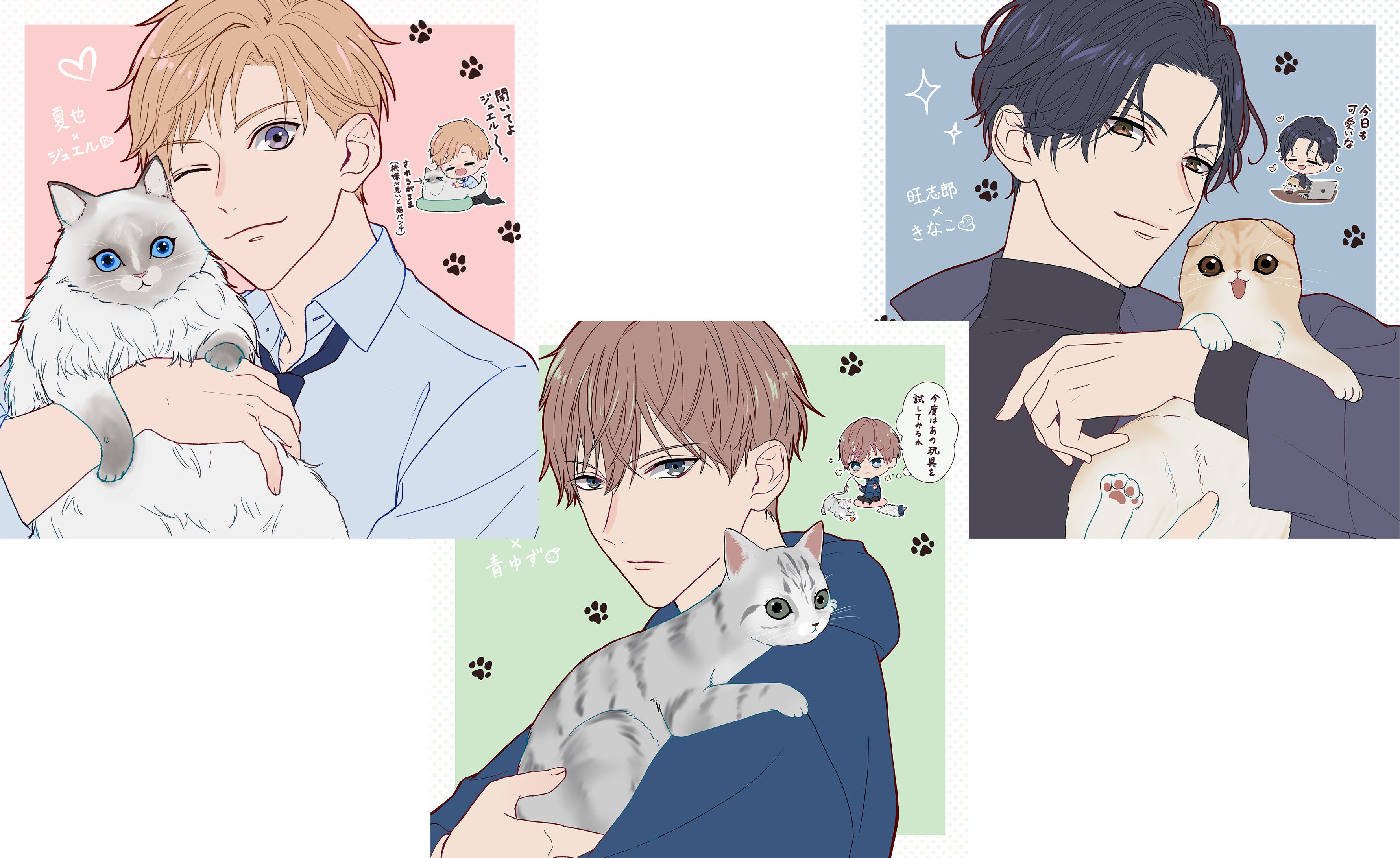 さらに本作の発売に伴い、それぞれの彼とアナタとの恋愛を描いた「ねこカフェ男子」のシチュエーションドラマCDの発売も決定しました!ボルテージが得意とする恋愛ストーリーで耳キュン体験をお届けいたしますので、発売を楽しみにお待ちください。