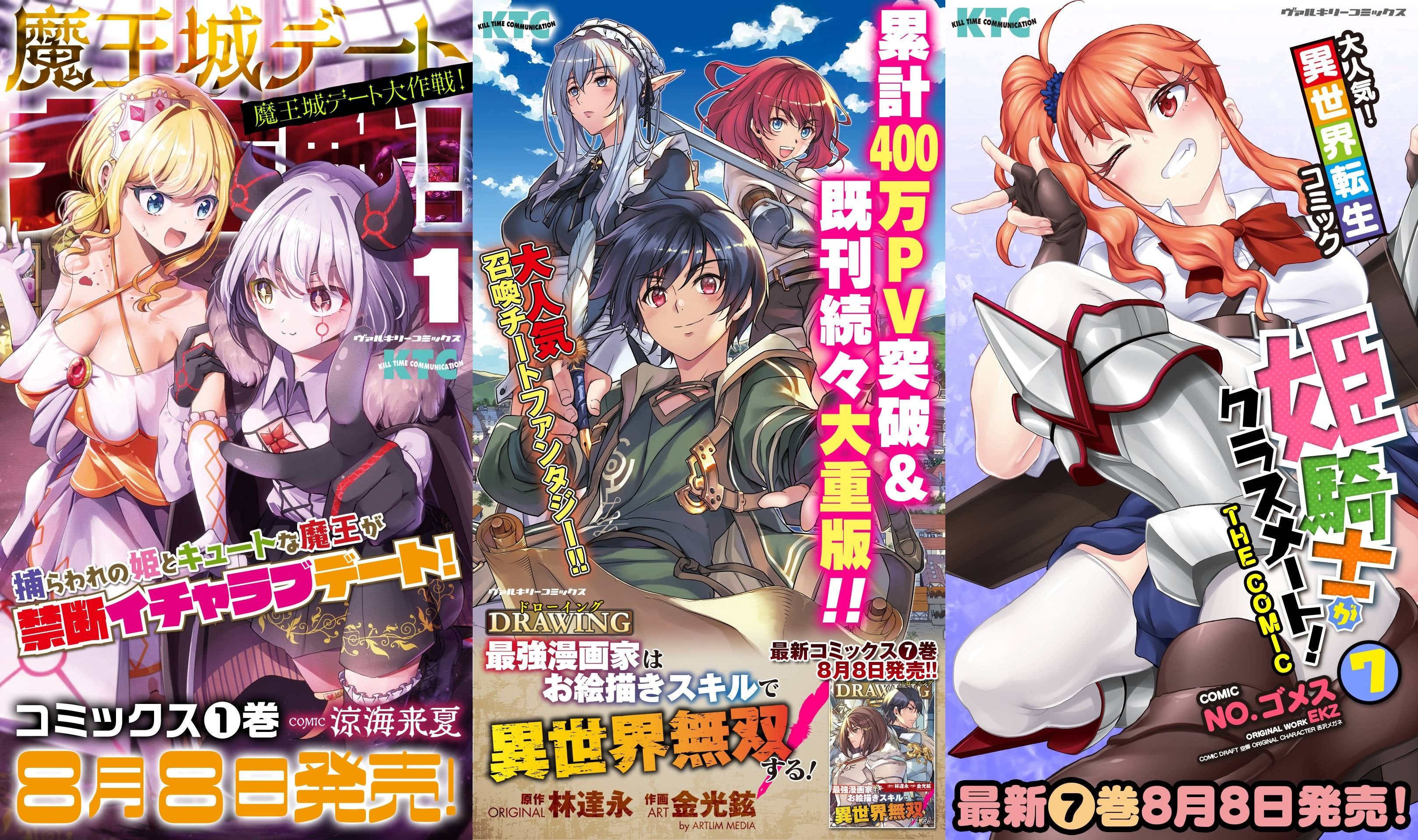 8月のヴァルキリーコミックス新刊から、『魔王城デート大作戦!1』『ドローイング 最強漫画家はお絵描きスキルで異世界無双する! 7』『姫騎士がクラスメート!THE COMIC 7』の3作品が秋葉原に登場!