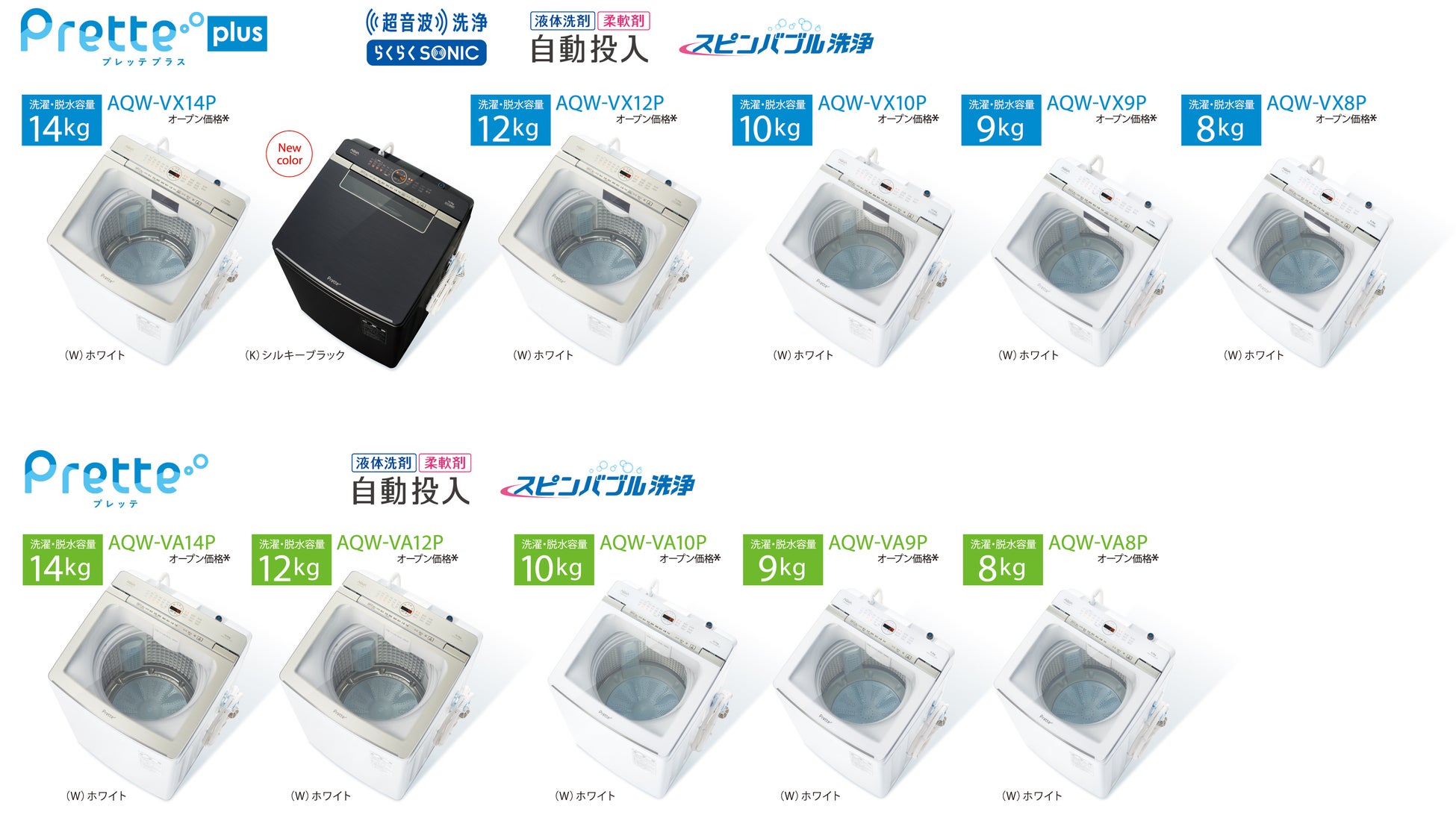 【AQUA 全自動洗濯機「Pretteシリーズ」商品概要】