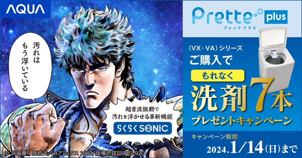 店頭では今年40周年を迎える「北斗の拳」のケンシロウをキャンペーンキャラクターに迎え、本キャンペーンを展開いたします。店頭POPやリーフレットにて、漫画の名シーンに載せて語られる超音波部分洗浄機能「らくらくSONIC」の機能性にもご注目ください。