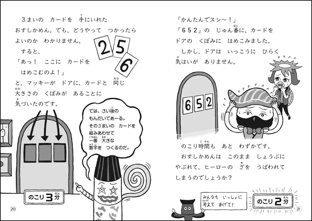 第3巻『ドッキリ! だまし絵パズルじま』の発売を記念して、2022年夏に開催された「オリジナルキャラクターコンテスト」の最優秀賞に輝いたキャラクター、マジックインチキがおすしかめんと対決するシーンもあり。ふたりの対決の行方にもご注目ください。
