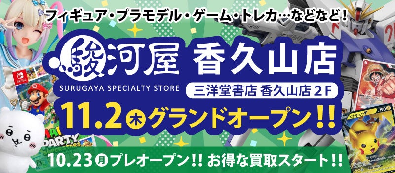 Mio香久山向かいにある「三洋堂書店 香久山店」2Fに「駿河屋」がオープンいたします!