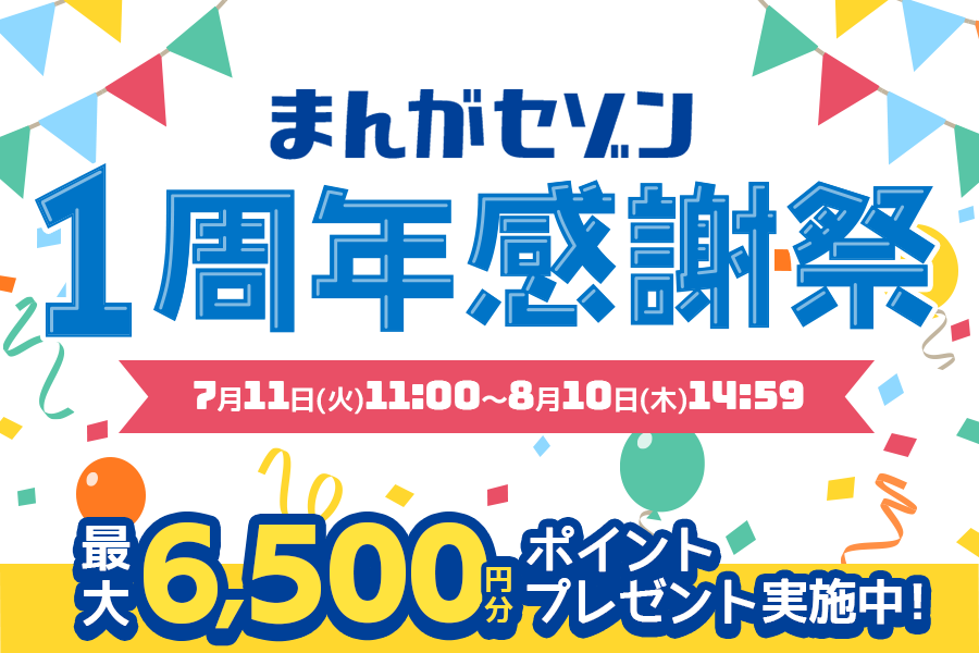 このたび1周年を記念し、「まんがセゾン 1周年感謝祭」にて最大6,500円分ポイントをプレゼントするキャンペーンを実施しております。また、お客様により楽しく、便利にご利用いただけるよう、サービス内容をアップデートいたしましたのでお知らせいたします。