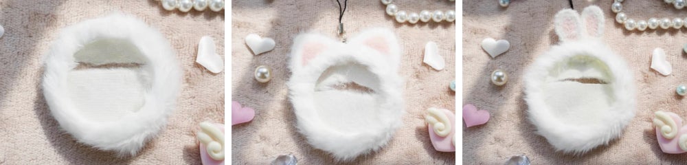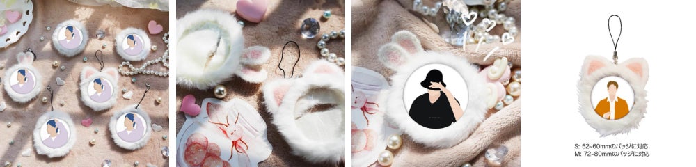 もこもこの縁取りが可愛いバッジ保護ケースです。猫耳やうさぎ耳でさらにキュートなアレンジにもできます。ケースについたストラップでも、バッジ本来の背面のピンでもバッグなどに取り付けが可能です。