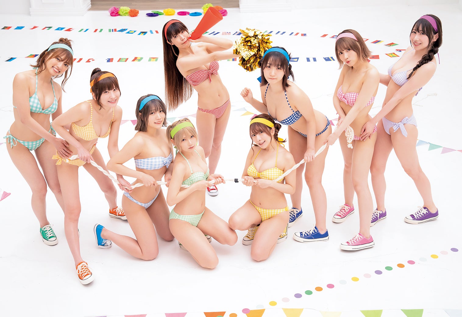 新メンバーも加わりパワーアップしたPPエンタープライズが表紙&巻頭&センターグラビアをオールジャックして体育祭を開催!! 巻頭グラビアは体育祭編!! 参加した全員で円陣組んで、気合十分!! 二手に分かれ綱引き、仲良く二人三脚、メガホンで応援合戦など熱く、可愛い戦いを収録しました!! センターグラビアでは、全員違うカラーのジャージを羽織った休憩モードを収録。