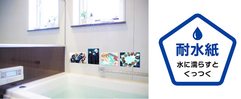 水に濡らすと平滑な壁にくっつきます。お風呂の壁や窓、水場などに貼ることが可能です。