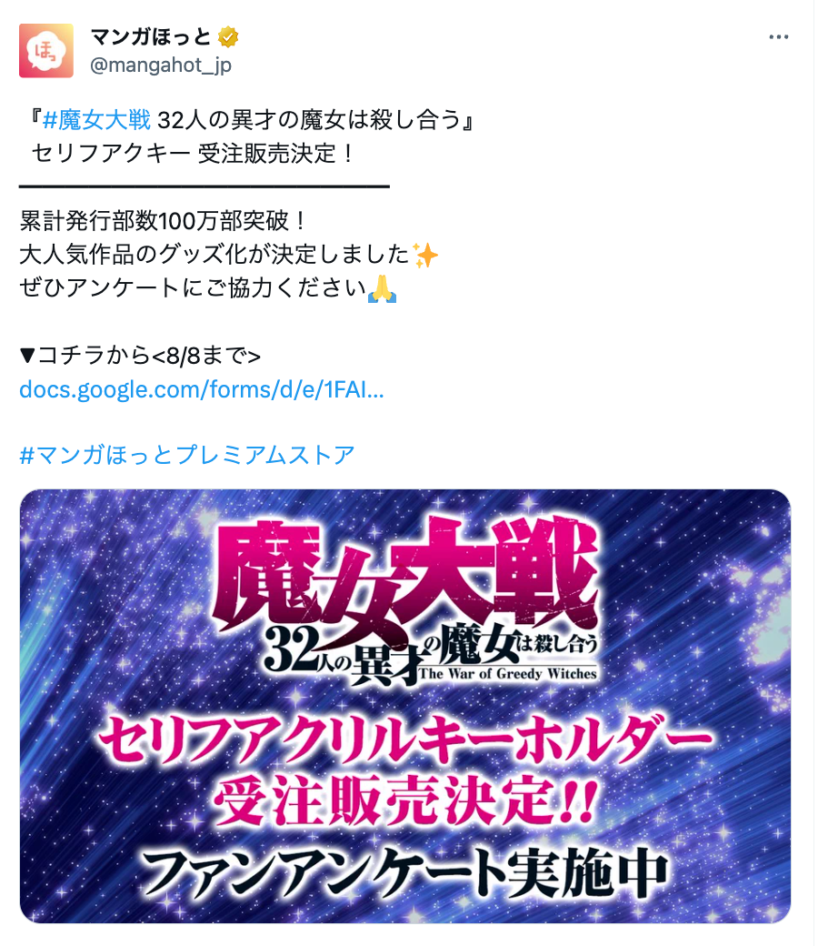 累計100万部突破!!『魔女大戦』のグッズ化が決定!!