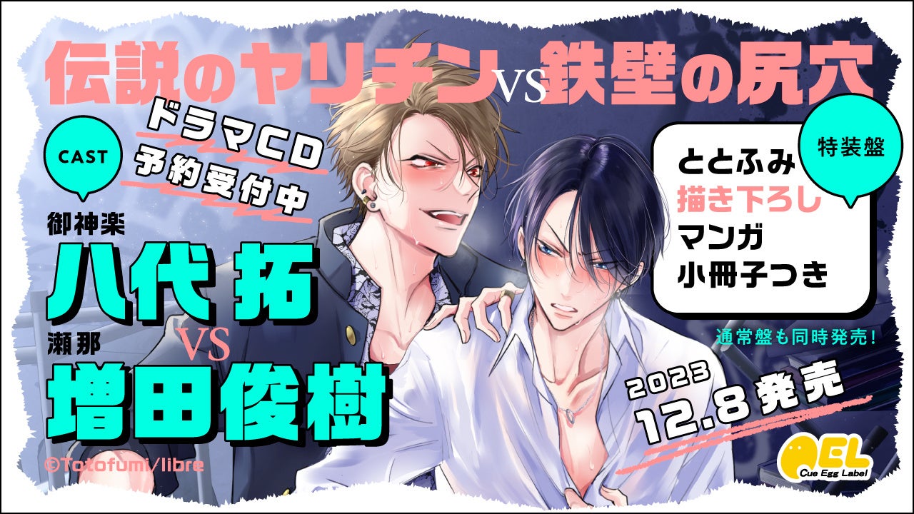 まだ恋を知らない男達の爆笑バトルラブコメの人気コミックス「伝説のヤリチンVS鉄壁の尻穴」がドラマCDとなって登場! 2023年12月8日に発売決定!