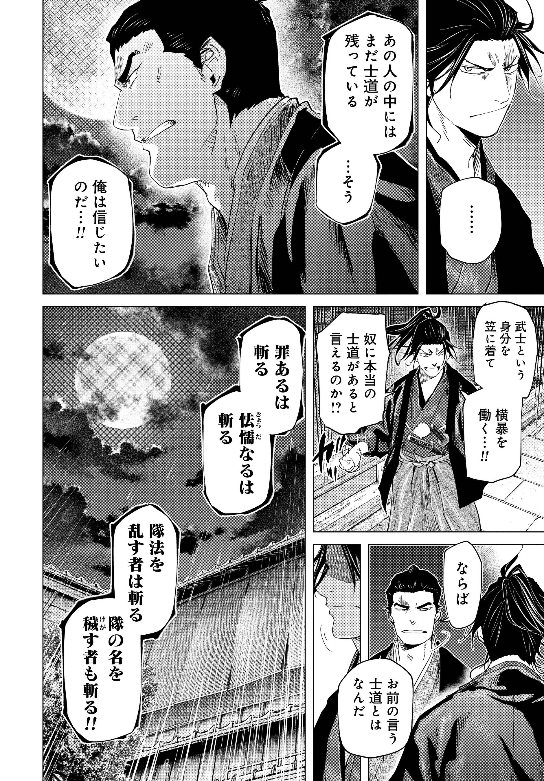 京都にたどり着き、念願の武士としての役目を果たそうと意気込む土方歳三でしたが、同胞・清河八郎の裏切り、芹沢鴨一派による横暴、そして組織の財政難に次々と直面します。