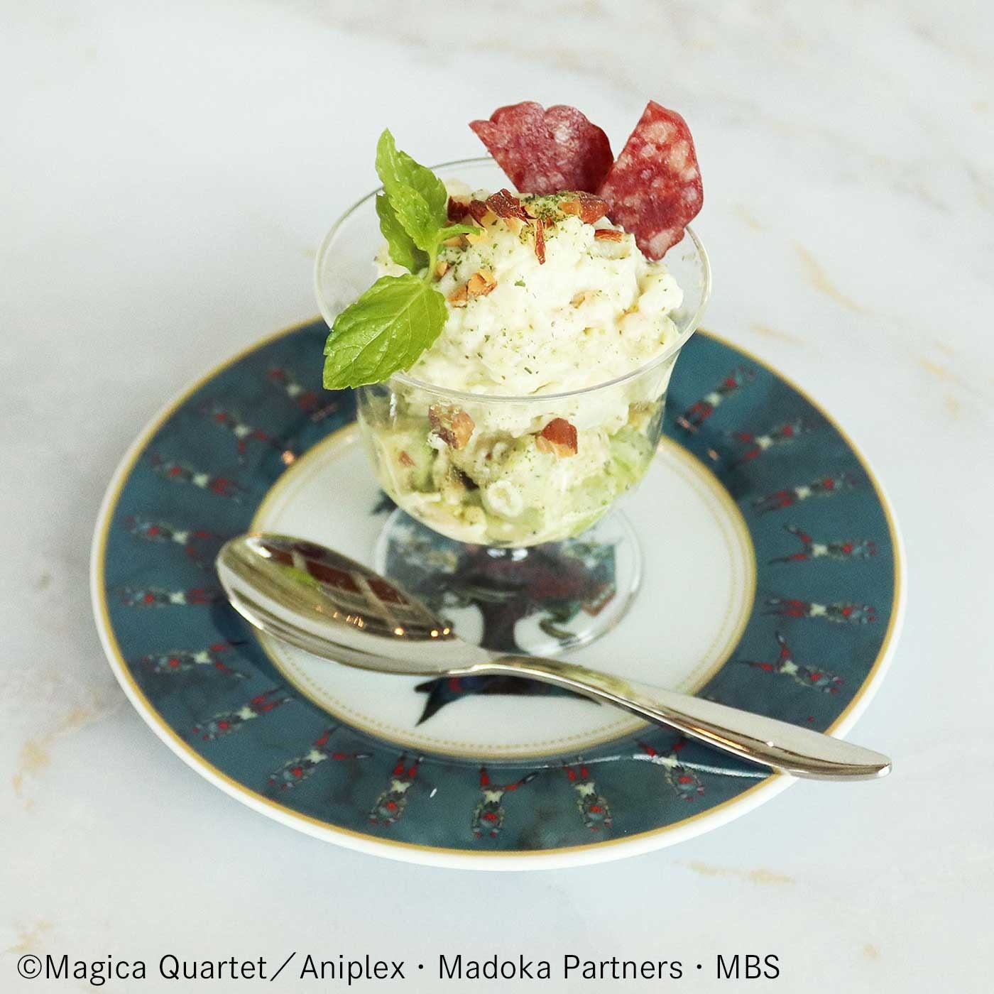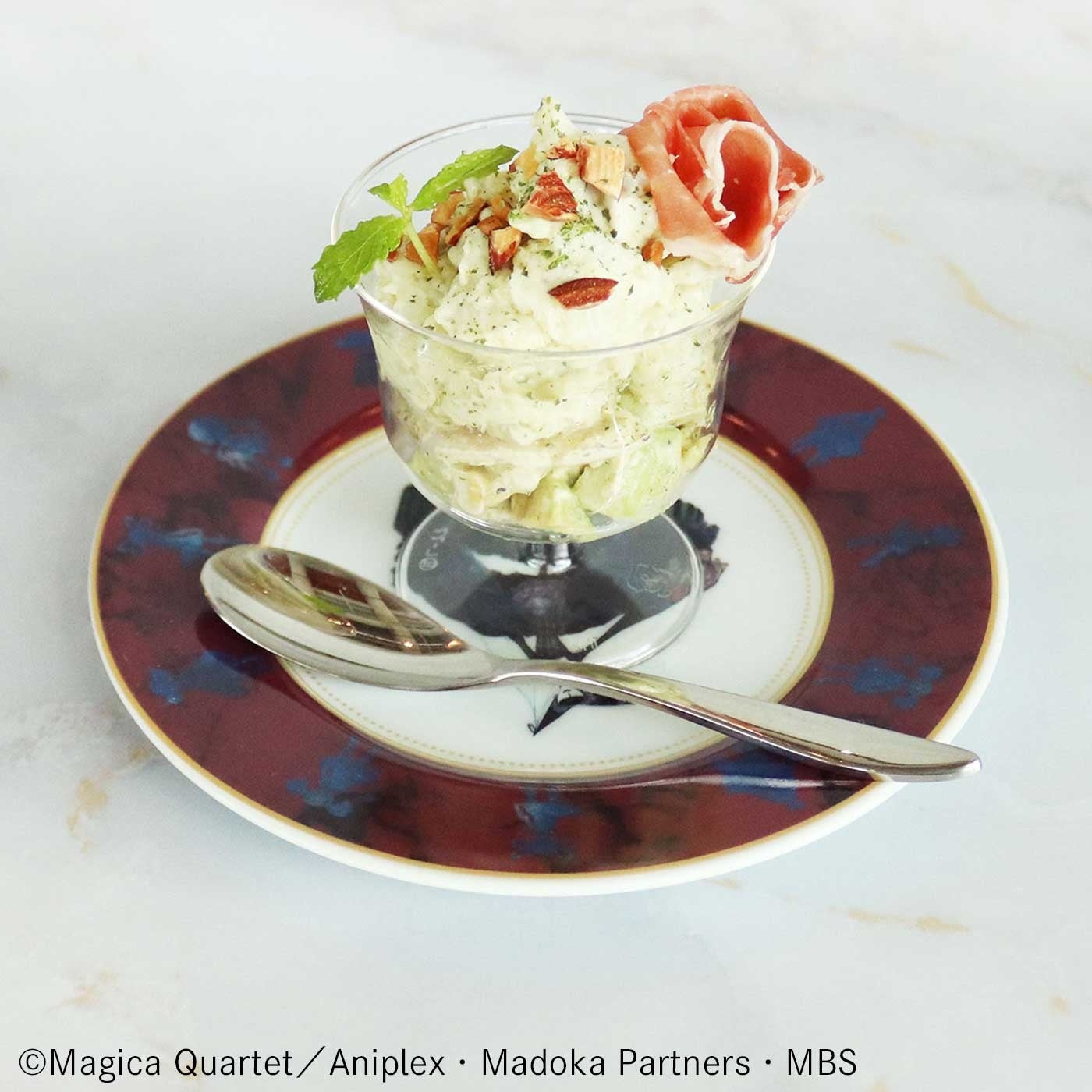 ワルプルギスの夜ver.はポテトサラダに、ぐるぐると回転する様子をイメージした生ハムが添えられた一皿。ワインとのマリアージュを楽しめるフードです。
