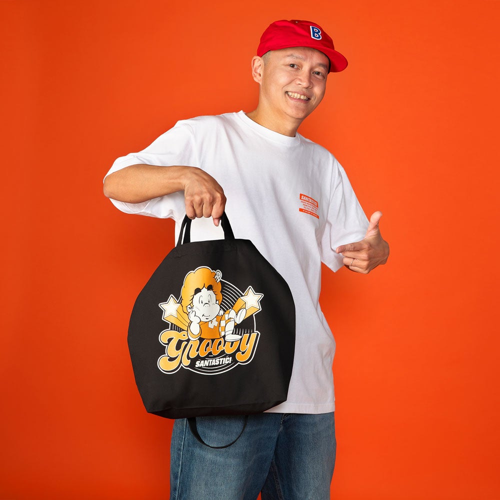 ハシームがかわいい2WAYトートバッグは12inchレコードを入れるのにちょうど良いサイズ。便利なインナーポケット付き。