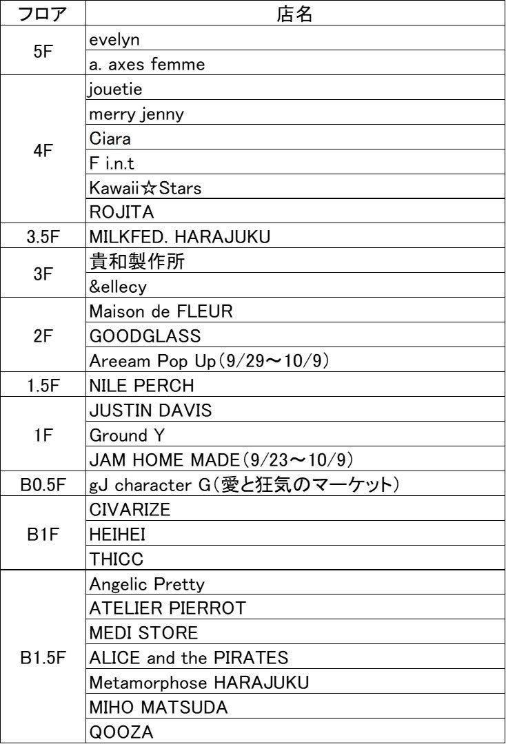 ku、HABA LABO 表参道、OH MY CAFÉ TOKYO、キディランド原宿店、ヴァンドーム青山 本店、