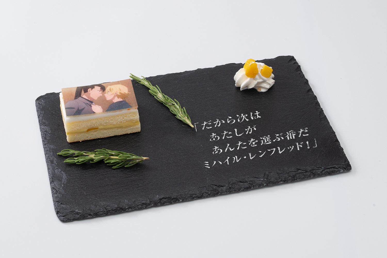 ブルーベリーケーキ。表面にはエピソード11からフィロメラのシーンをプリント。