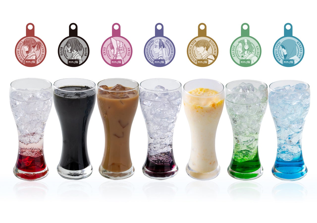 チセ、ルツ、シルキーと、カレッジの生徒たちをイメージしたドリンク。【各キャラクターのストローピック付き】