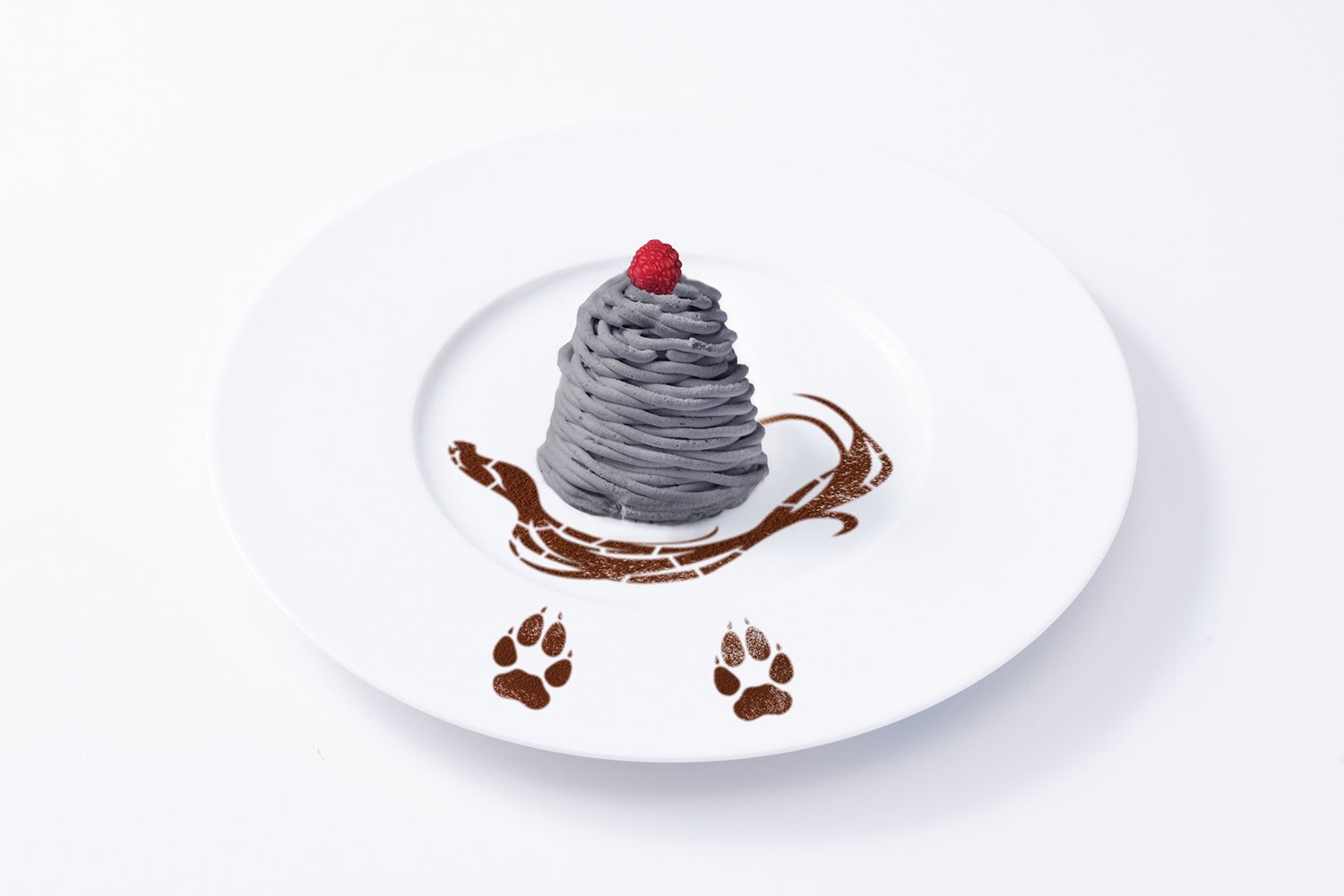 ルツをイメージしたシックな黒モンブラン(チョコ味)。ココアパウダーでルツの長い尻尾をトッピング。