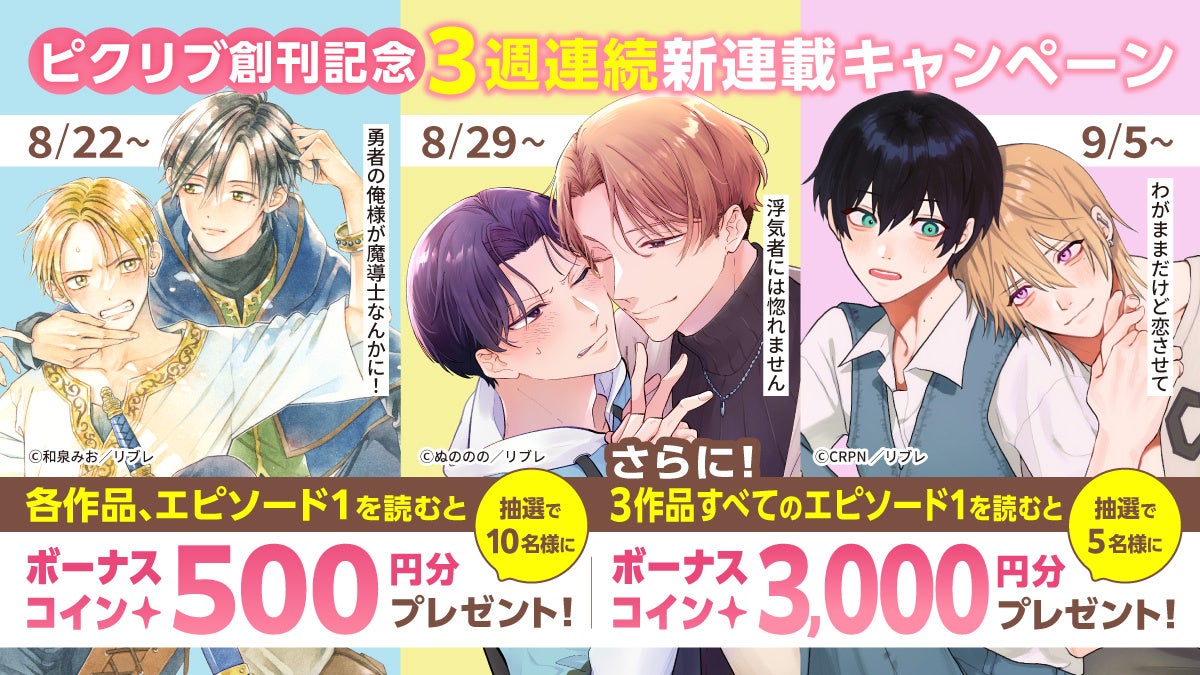 さらに、連載作品3作品すべてのエピソード1を読了した読者様から、抽選で5名様に3,000円分のボーナスコインをプレゼント!