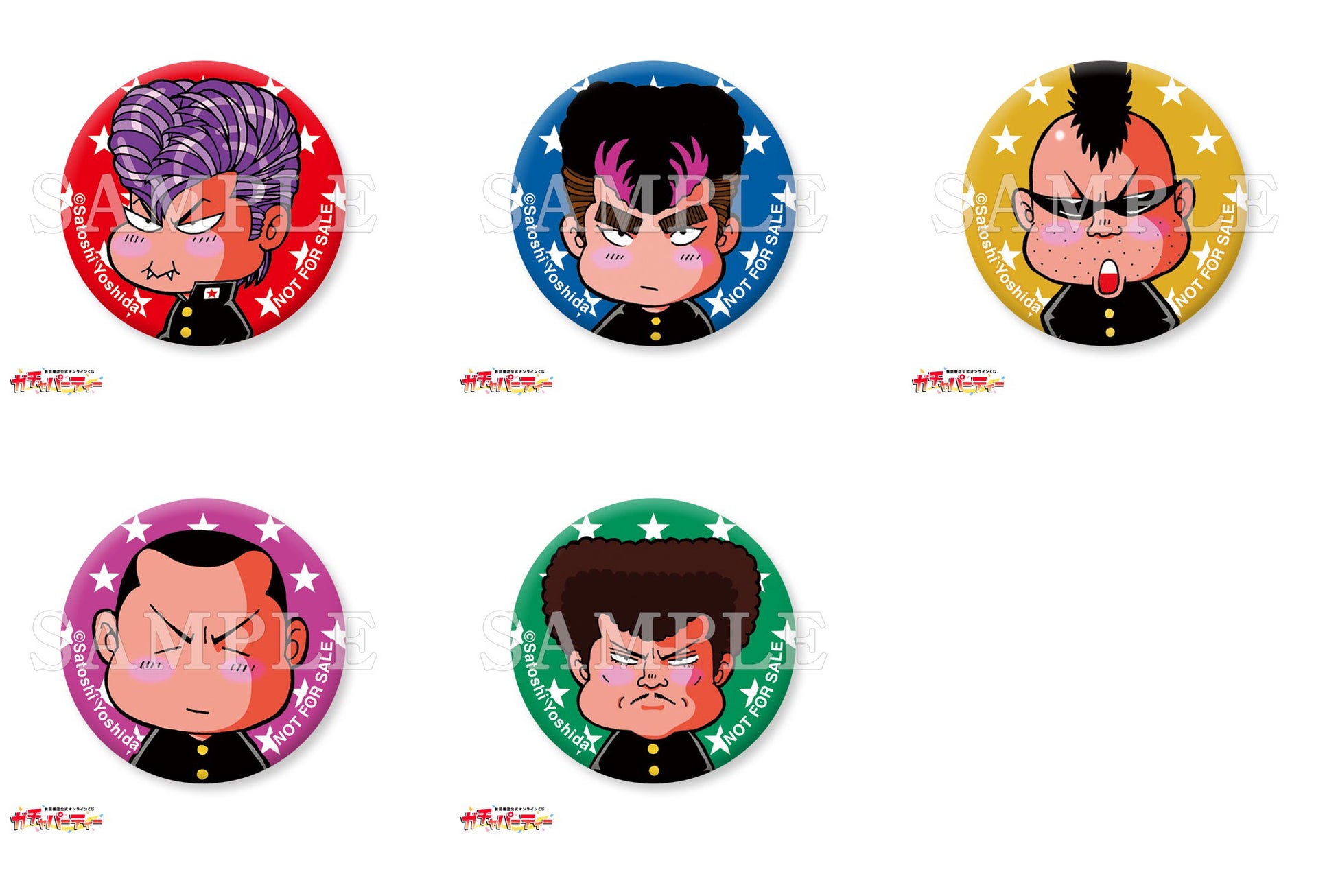その他、くじを10枚購入するごとにランダムでミニ缶バッジが当たる[10連購入特典]や、購入者の中から抽選で10名に吉田聡先生直筆のサインが入った高精細複製原画が当たる[抽選購入特典]も有り。