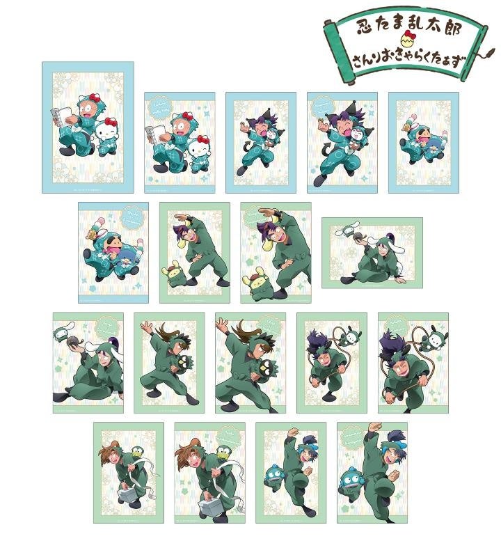 種類 :全10種(猪名寺乱太郎×ハローキティ、摂津のきり丸×クロミ、福富しんべヱ×タキシードサム、潮江文次郎×ポムポムプリン、立花仙蔵×シナモロール、中在家長次×バッドばつ丸、七松小平太×ポチャッコ、善法寺伊作×けろけろけろっぴ、食満留三郎×ハンギョドン、集合)