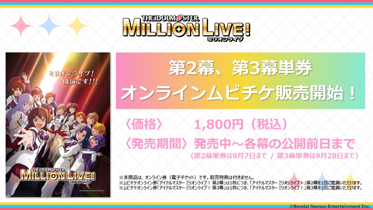 ※ムビチケオンライン券「アイドルマスター ミリオンライブ! 第2幕」は1枚につき、