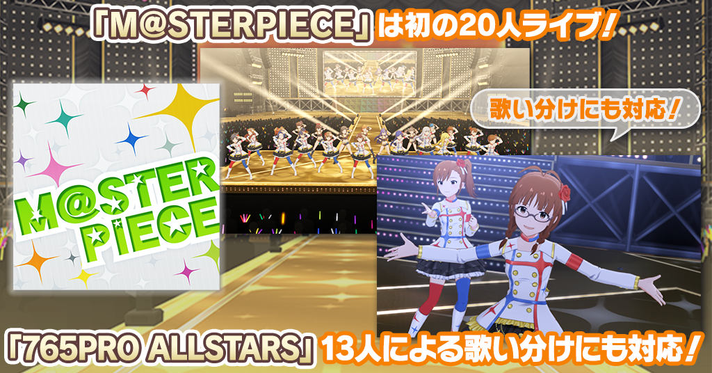 「M@STERPIECE」では、グループAに設定した『765PRO ALLSTARS』による歌い分けが楽しめます。