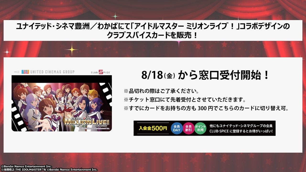 8/18よりユナイテッド・シネマ豊洲/わかば限定「アイドルマスターミリオンライブ!」コラボデザインシネマカードの販売が決定♪