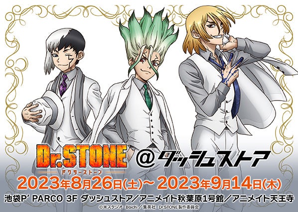 『週刊少年ジャンプ』(集英社)にて連載された、原作:稲垣理一郎先生、作画:Boichi先生による大人気漫画を原作にしたTVアニメ『Dr.STONE』。この度、本作の期間限定ポップアップストアがオープンいたします。