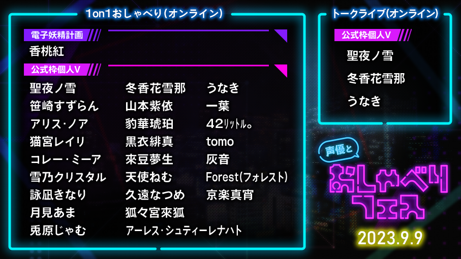 「声優とおしゃべりフェス」が2023年9月9日(土)に開催!