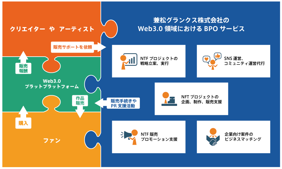 (*2) BPOサービス…Business Process Outsourcingを略した言葉で、クリエイターやアーティストの作品販売活動における業務プロセスの一部を一括して受託すること。