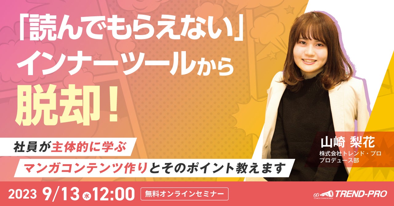 こうした課題を受け、約2,000社・10,000件の企業マンガ制作の実績があるトレンド・プロが、企業内の研修や施策浸透に有効なマンガツールについて、制作のポイントや事例をお伝えするオンラインセミナーを実施します。