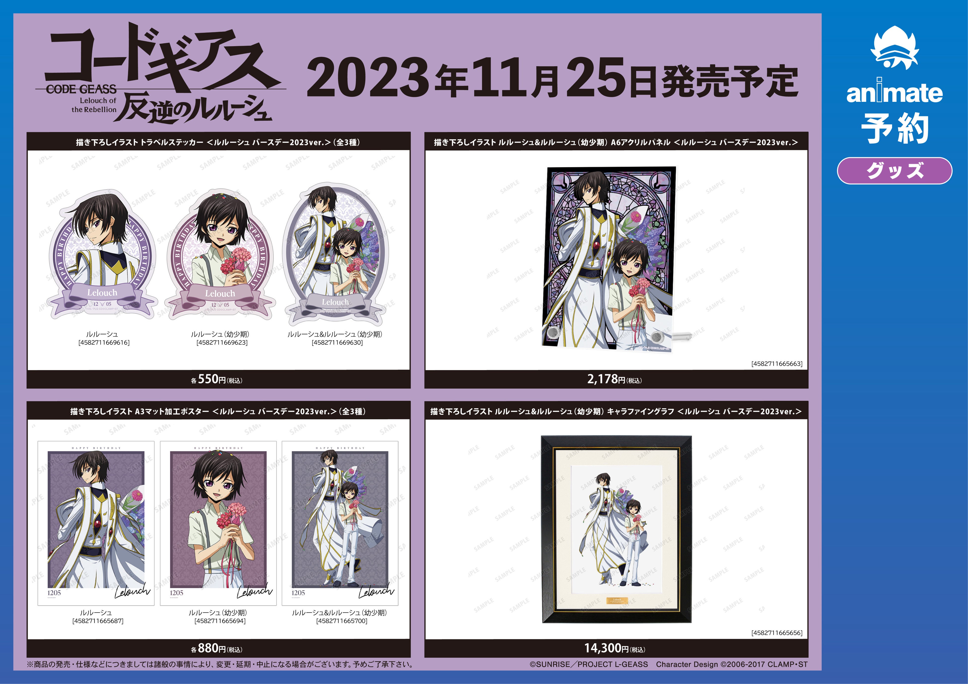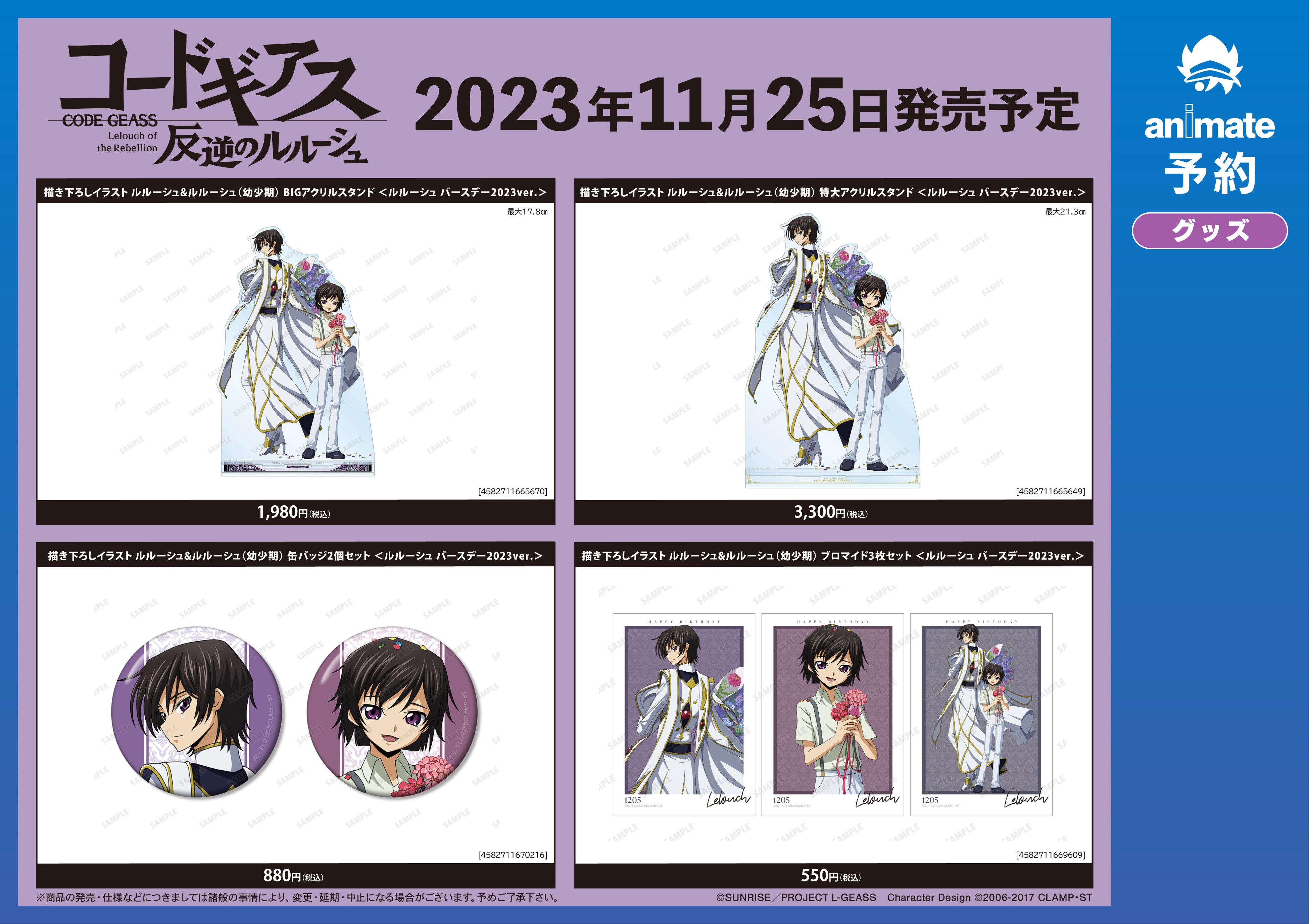 「『コードギアス 反逆のルルーシュ』ルルーシュ バースデーフェア 2023 in アニメイト 通販事前予約キャンペーン」