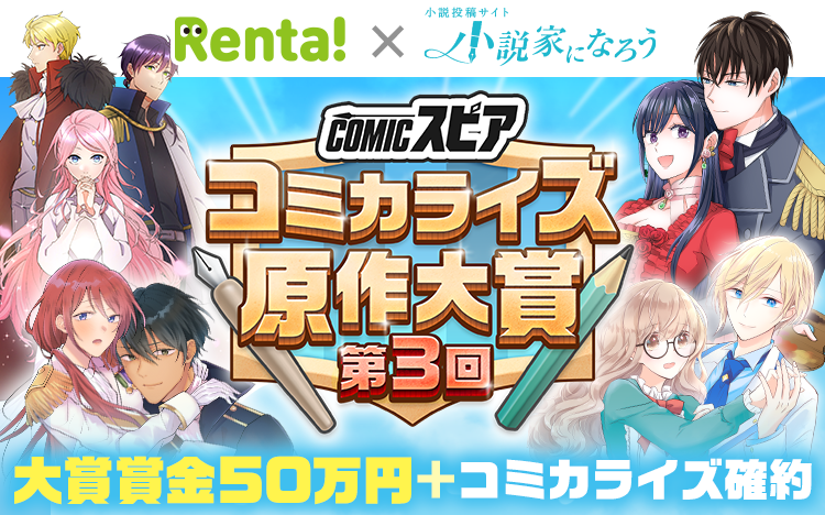 この度、マルチデバイス対応電子書籍レンタルサイト「Renta!」(https://renta.papy.co.jp/)では、2023年8月25日(金)より、「小説家になろう」※と共同で、オリジナル漫画レーベル「COMICスピア」よりリリースする作品のコミカライズ原作コンテストの第3回を実施いたします。