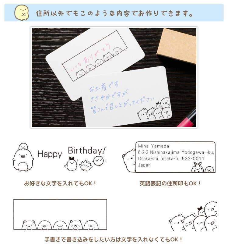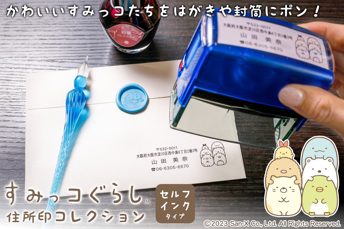 「すみっコぐらし 住所印コレクション」は、SNSのフォロワーの方からいただいた「すみっコぐらしの住所印が欲しい!」という声に応えて企画した「すみっコぐらし はんこコレクション」の新商品。幅広い世代に愛されている「すみっコぐらし」のかわいい仲間たちが、アナログな住所印を引き立ててくれます。