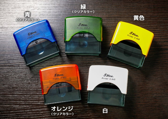 インクをつけて使うゴム印タイプのほか、インクパッドを内蔵し連続してポンポンスタンプできるセルフインクタイプも選ぶことができます(ボディーカラーは5色から選べます)。