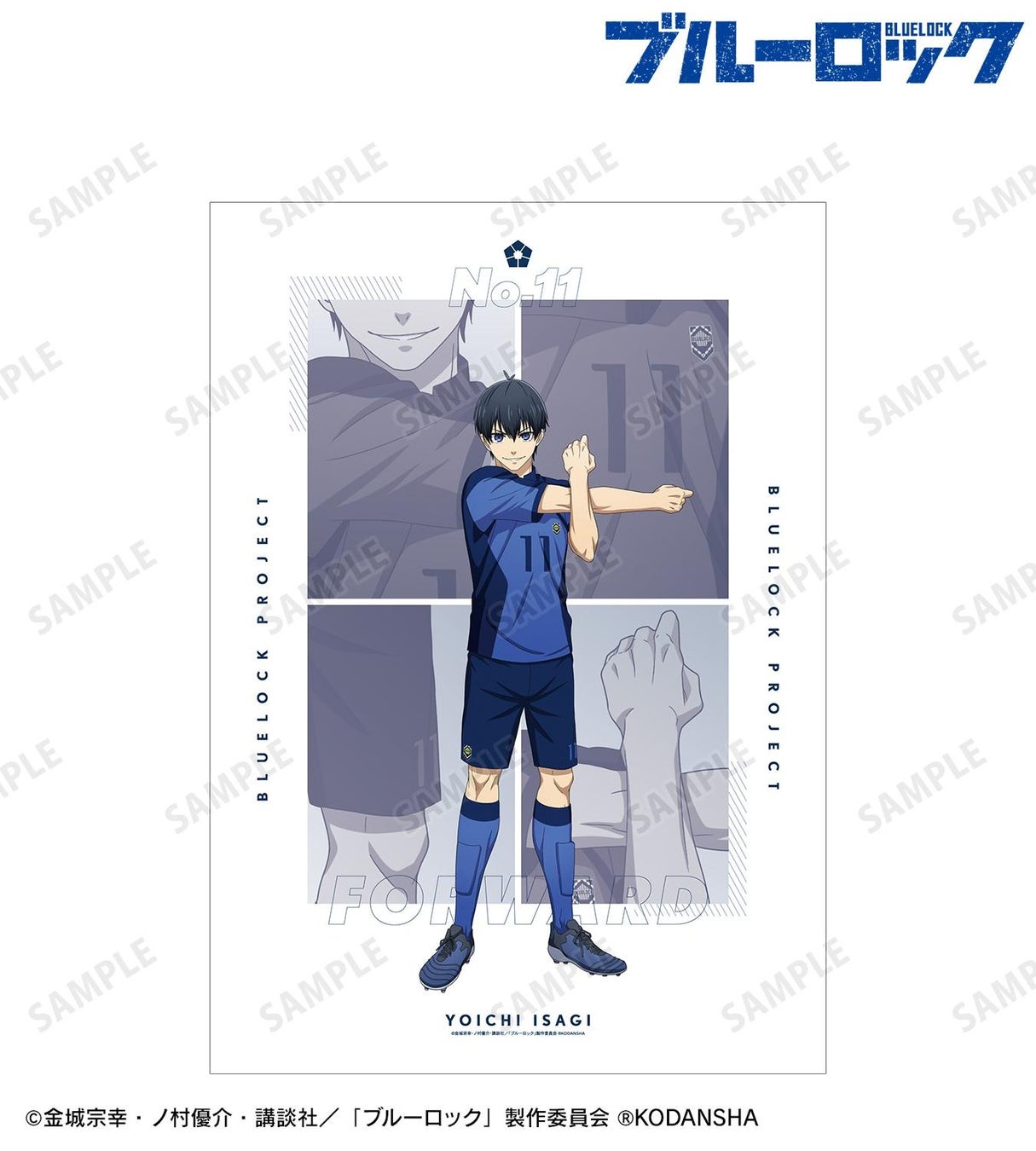 潔 世一、蜂楽 廻、千切 豹馬、凪 誠士郎、御影 玲王、糸師 凛の描き下ろしイラストをA3サイズのマット加工されたポスターに仕上げました。