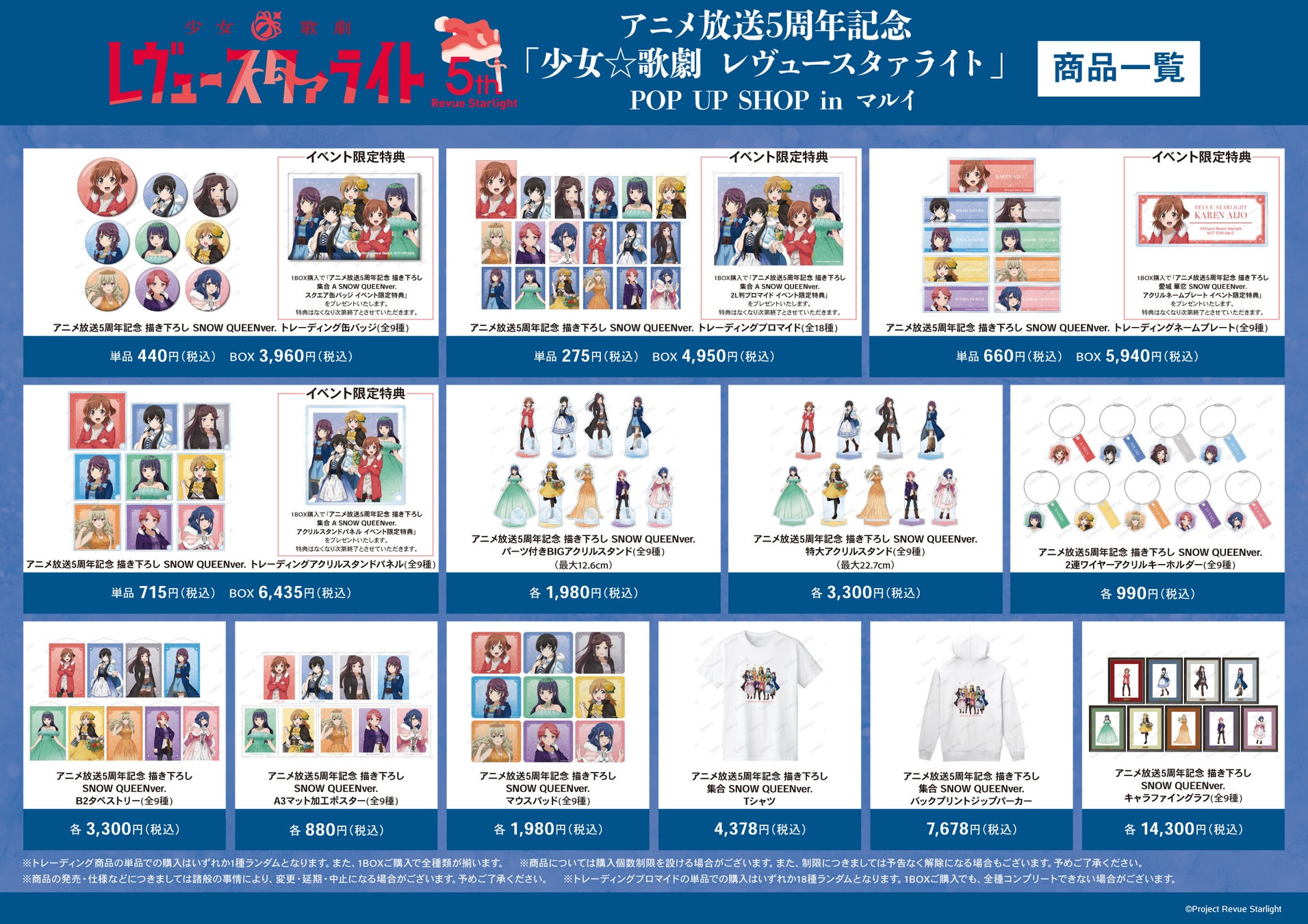 ※後日、ECサイト「AMNIBUS」では、BOX購入特典として「アニメ放送5周年記念 描き下ろし 集合 B SNOW QUEENver. アクリルスタンドパネル AMNIBUS限定特典」を予定しております。