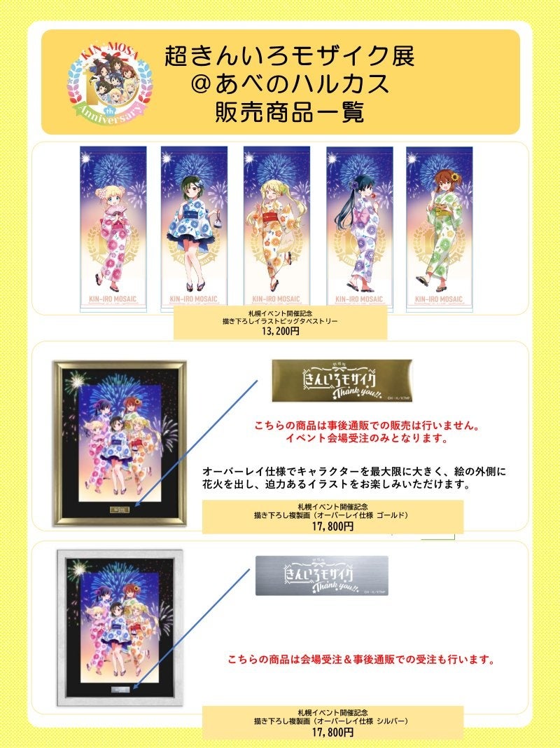 アニメ10周年・企画展第1弾「誕⽣編」を締めくくる「超・きんいろモザイク展」は、本年4⽉に開催し た横浜展(於:マルイシティ横浜)を超える規模の展⽰を実現しました。