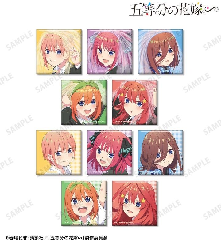中野一花、中野二乃、中野三玖、中野四葉、中野五月をスクエア缶バッジに仕上げました。