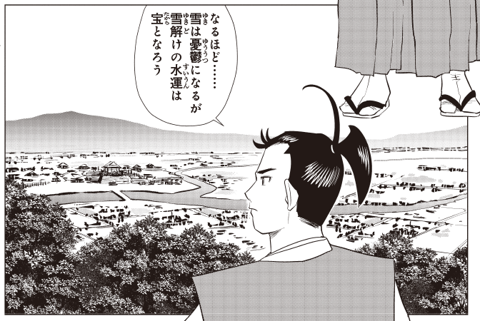 まんがを執筆した中島健志氏は、福井県へ取材に訪れ、福井での結城秀康の足跡を尋ねて歩きました。取材には福井県が全面協力! 取材で感じた地域の空気を、まんがに見事に表現しています。