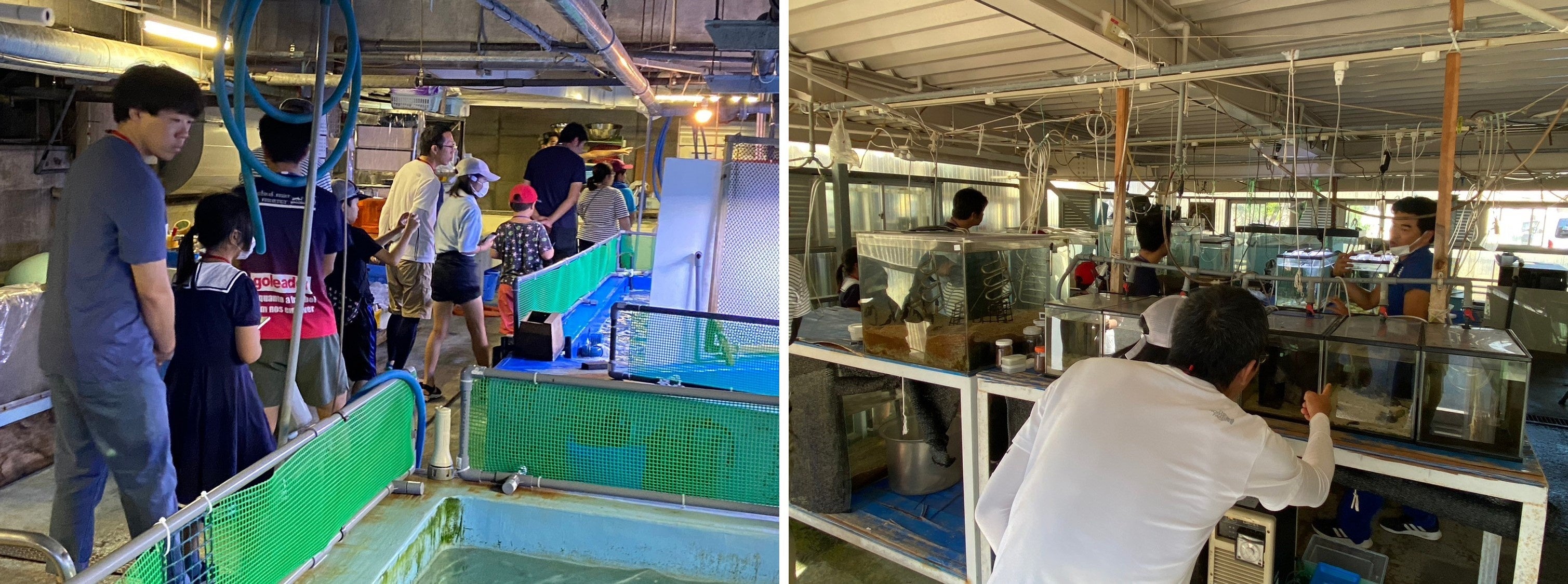 学芸員の手塚氏・野口氏の引率で、東海大学海洋学部博物館のバックヤードツアーを開催しました。生き物たちの飼育はどうやって行っているのか、何トンもの水をどのようにして巨大な水槽に供給するのかの説明を受けながら、あまり表には出ない研究をする為の施設や、貴重な標本も見る事が出来ました。このツアーでは子ども達だけでなく、保護者の皆さんも非日常的な空間の中で興味津々な様子でした。