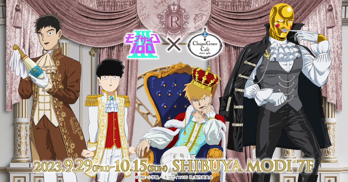 「TVアニメ『モブサイコ100 Ⅲ』×Chugai Grace Cafe ~師匠のBirthday Festival~」コラボカフェが渋⾕で開催!モブの師匠、霊幻新隆の誕生日をお祝いするため特別なコラボフードやドリンクが登場!