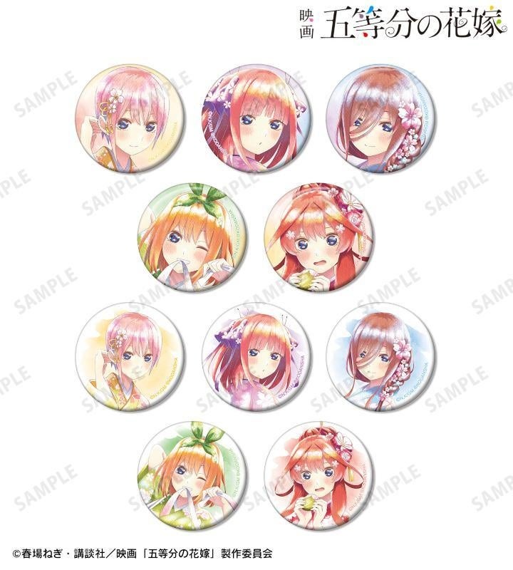 中野一花、中野二乃、中野三玖、中野四葉、中野五月の描き下ろしイラストを新たなタッチで魅力的に表現し、缶バッジに仕上げました。