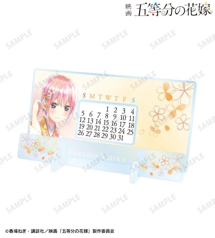 中野一花、中野二乃、中野三玖、中野四葉、中野五月の描き下ろしイラストを新たなタッチで魅力的に表現し、卓上アクリル万年カレンダーに仕上げました。
