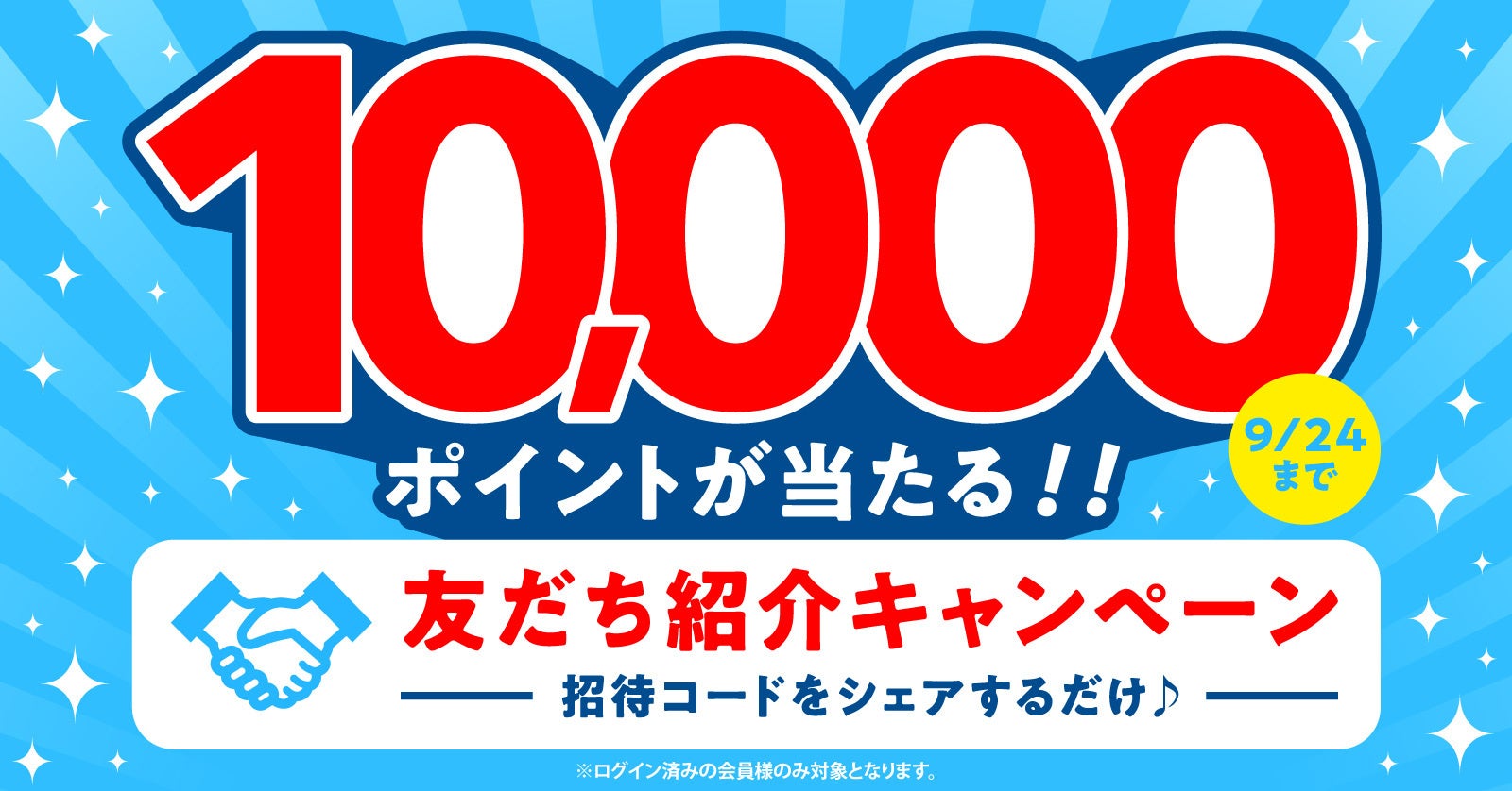 ※ キャンペーン期間中に3人招待した方が10,000ptプレゼントの抽選対象となります。10,000ptにご当選された方へのポイント付与は10月上旬頃を予定しております。付与をもって当選発表に代えさせていただきます