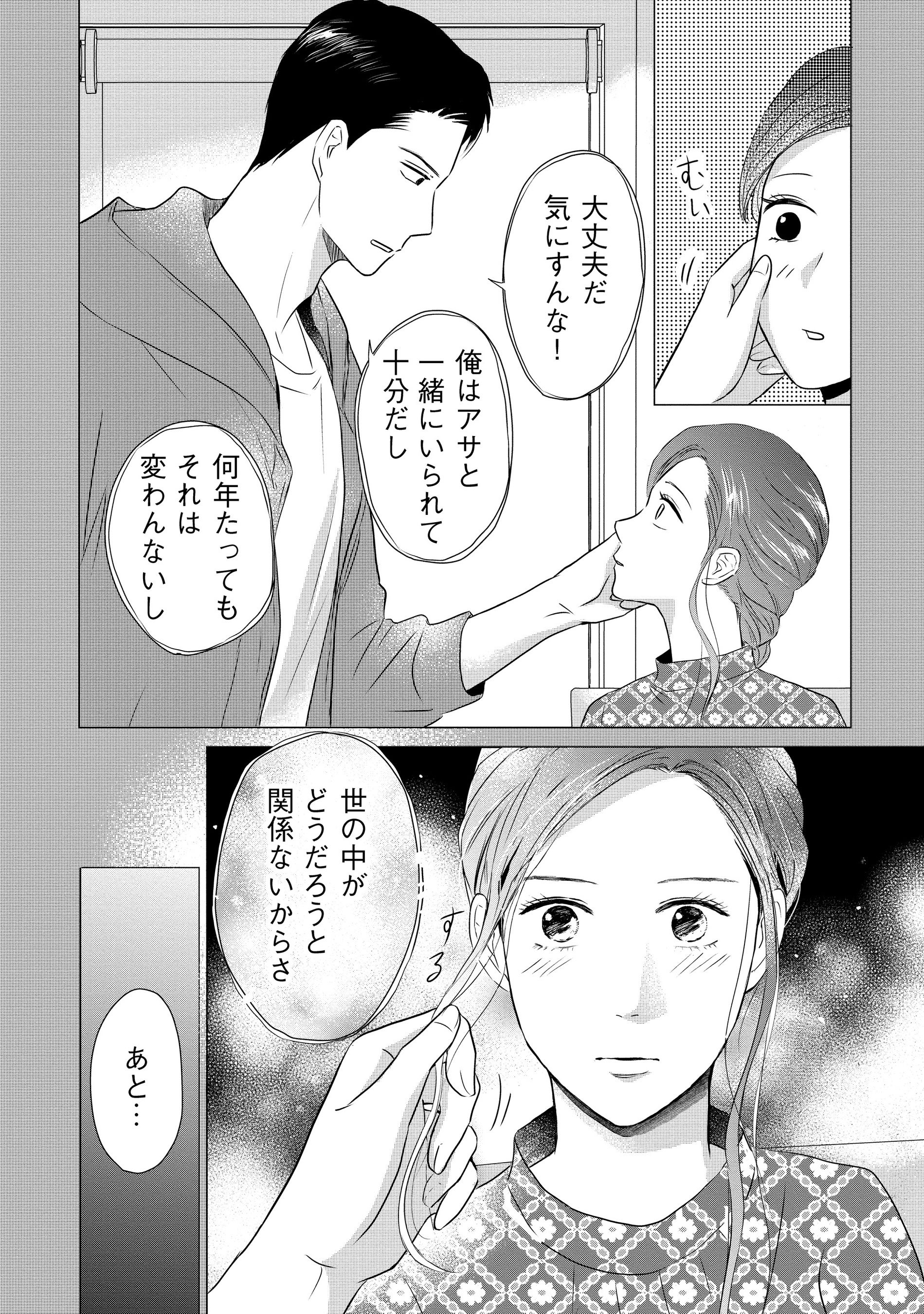 帰宅後、気落ちしたアサは哲也の「子どもはいなくていい」という言葉に慰められる。