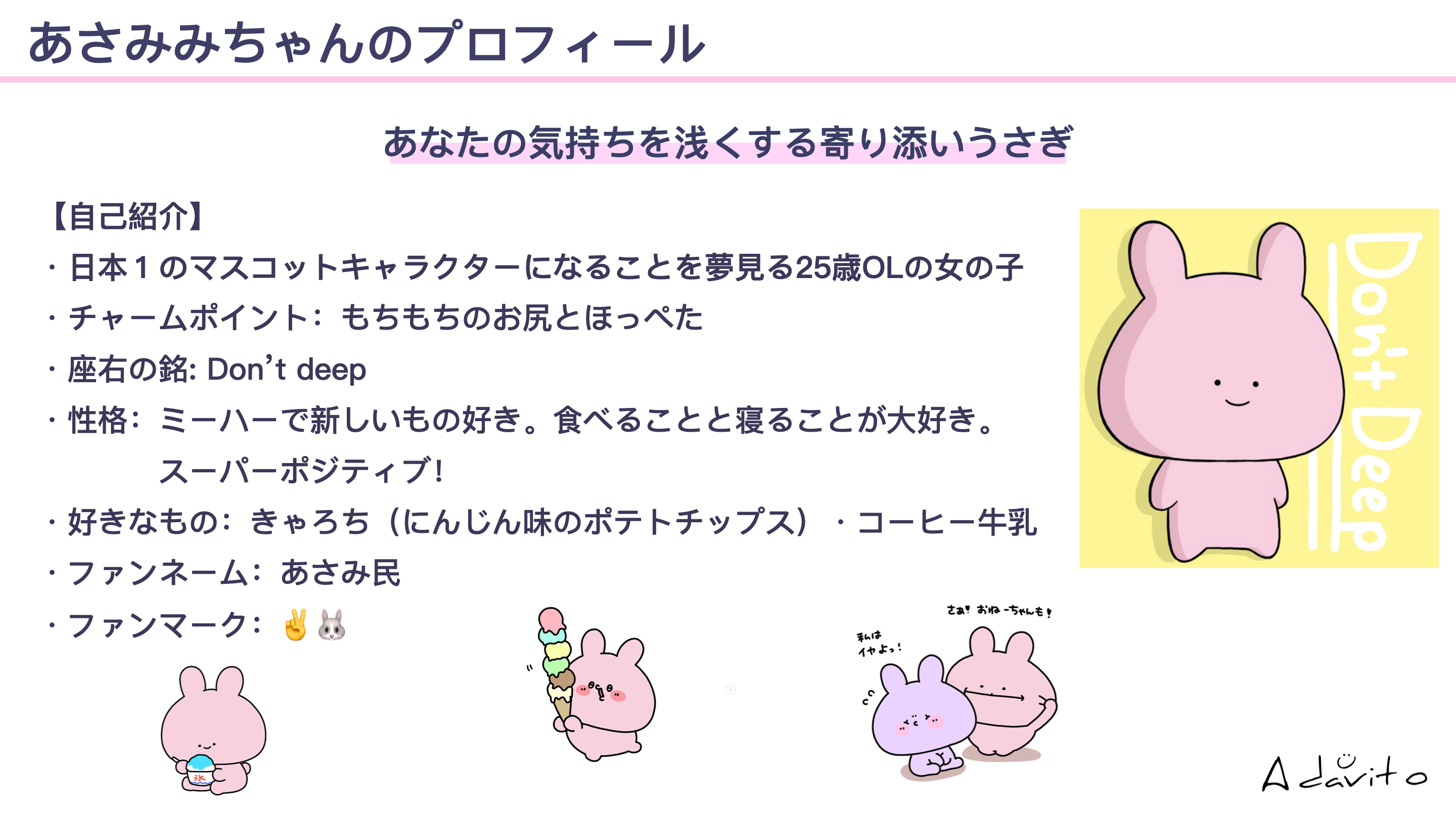 あさみみちゃんの2022年4月以降の各種SNSでの活動および、あさみみちゃんグッズブランド「Don’t deep.」の展開状況についてご説明させていただきます。