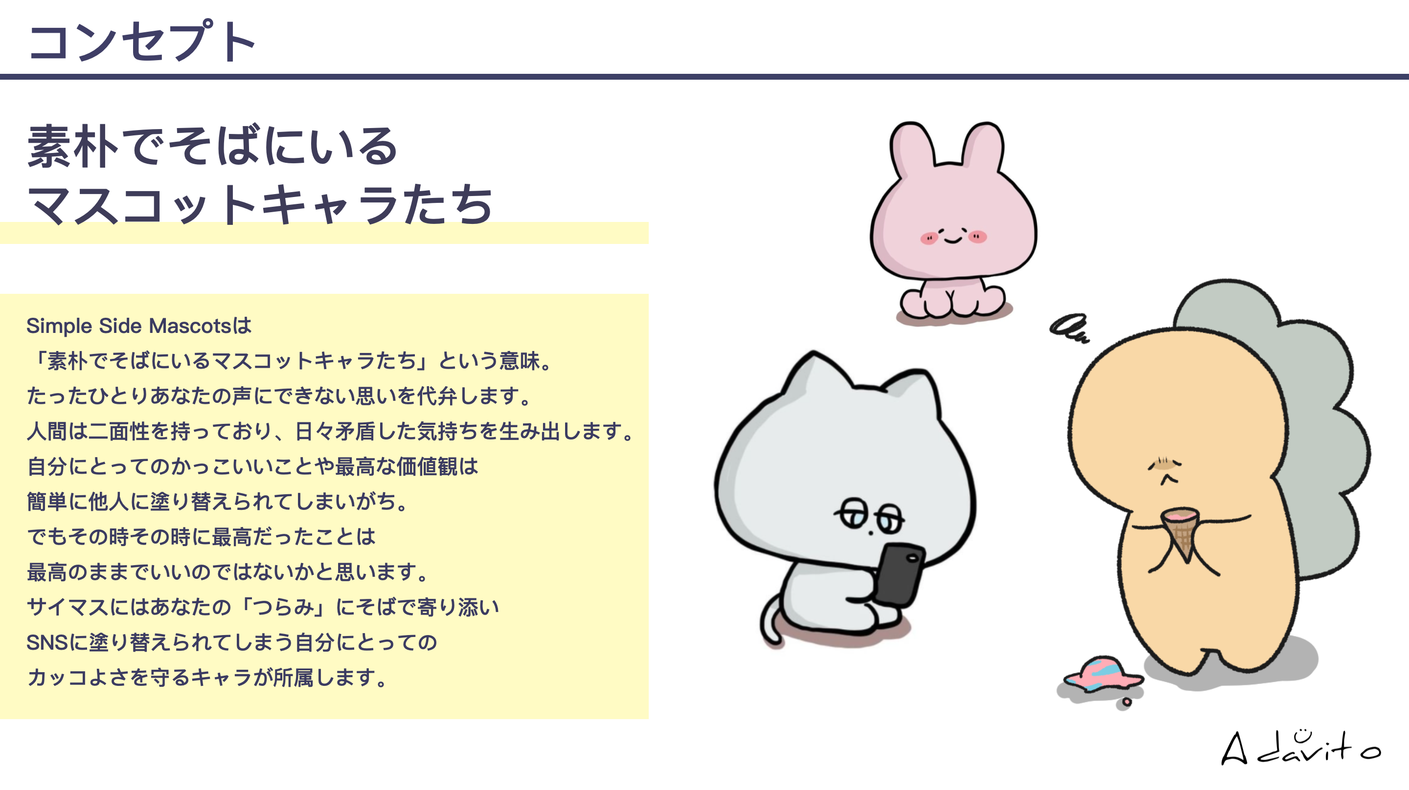 コンセプト:「素朴でそばにいるマスコットキャラたち」