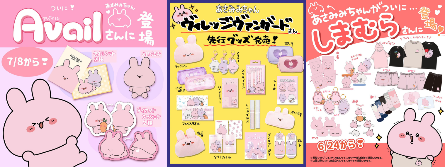 日本全国のしまむら様、ヴィレッジヴァンガード様へのあさみみちゃんグッズの展開を皮切りとして、2023年6月より量販店の全国展開が開始。7月にはAvail様にも展開され、全国のあさみ民がより身近にあさみみちゃんのグッズを手にすることができる場所が生まれ、お店をハシゴされたという報告をしてくれるあさみ民の方も多くいらっしゃり、大きな反響をいただきました。