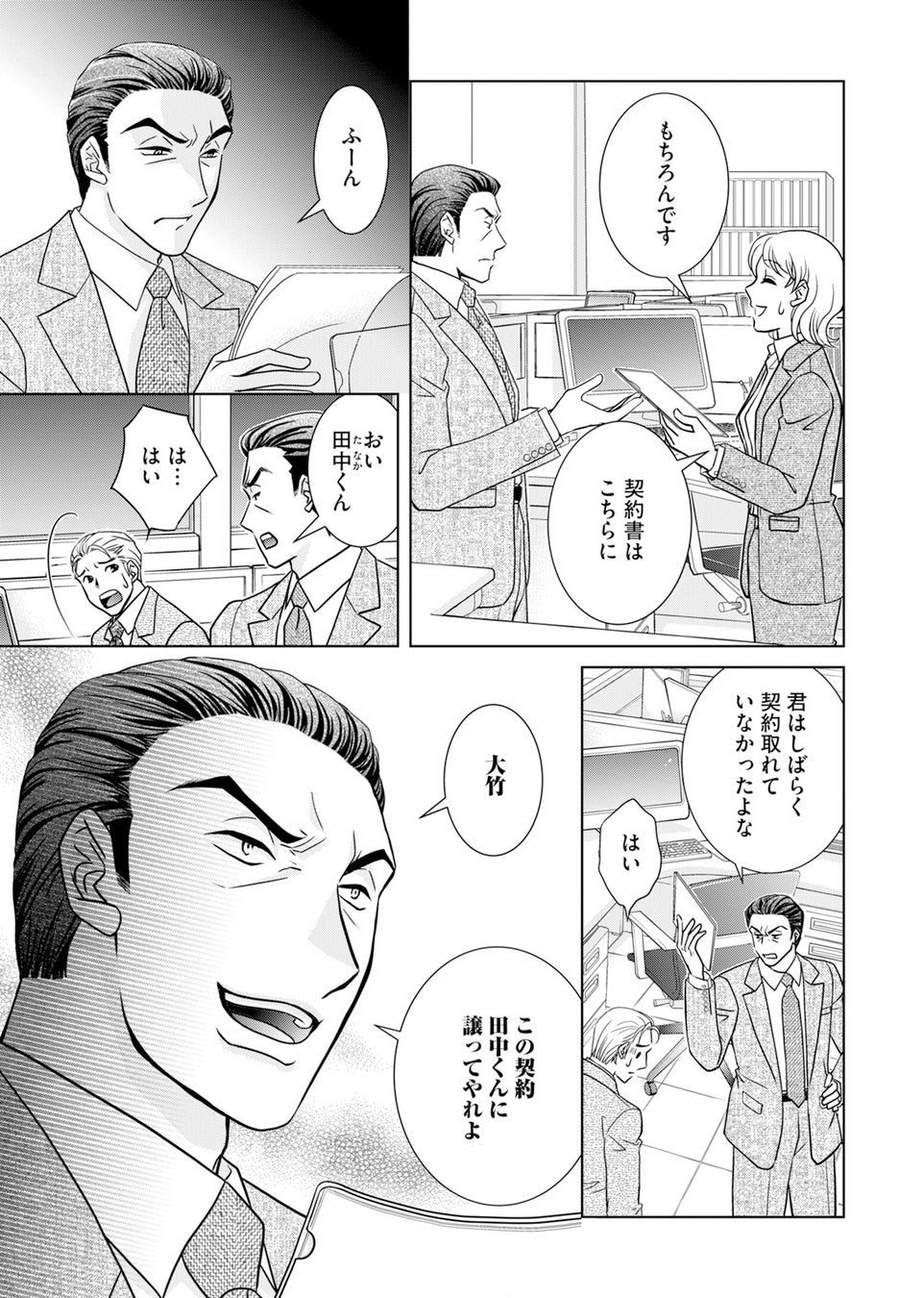 保険の外交員として働く美穂は、せっかく取った契約を上司の保田に取り上げられてしまう。常に女を下に見ている保田からのハラスメントは、日増しにエスカレートしていき……?