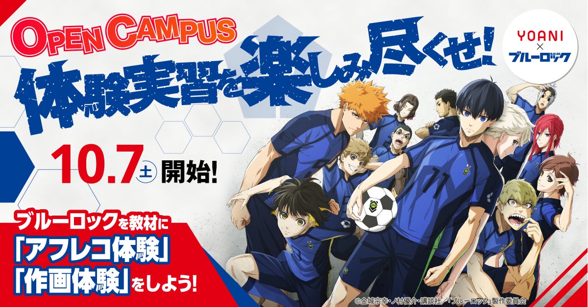 『ブルーロック』TVシリーズ第1期の映像を⽤いてのアフレコや、キャラクターの作画、液晶ペンタブレットを使⽤した⾊塗りなどの授業を体験できる「コラボオープンキャンパス」を、10月7日よりスタート予定です。